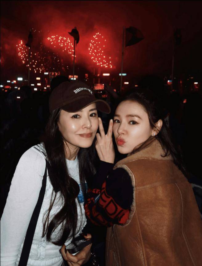 当中她非常难得的和姐姐谭凯欣(Nicole)同框,戴着棒球帽的谭凯欣保养得宜,皮肤白皙,姐妹俩都一样漂亮!